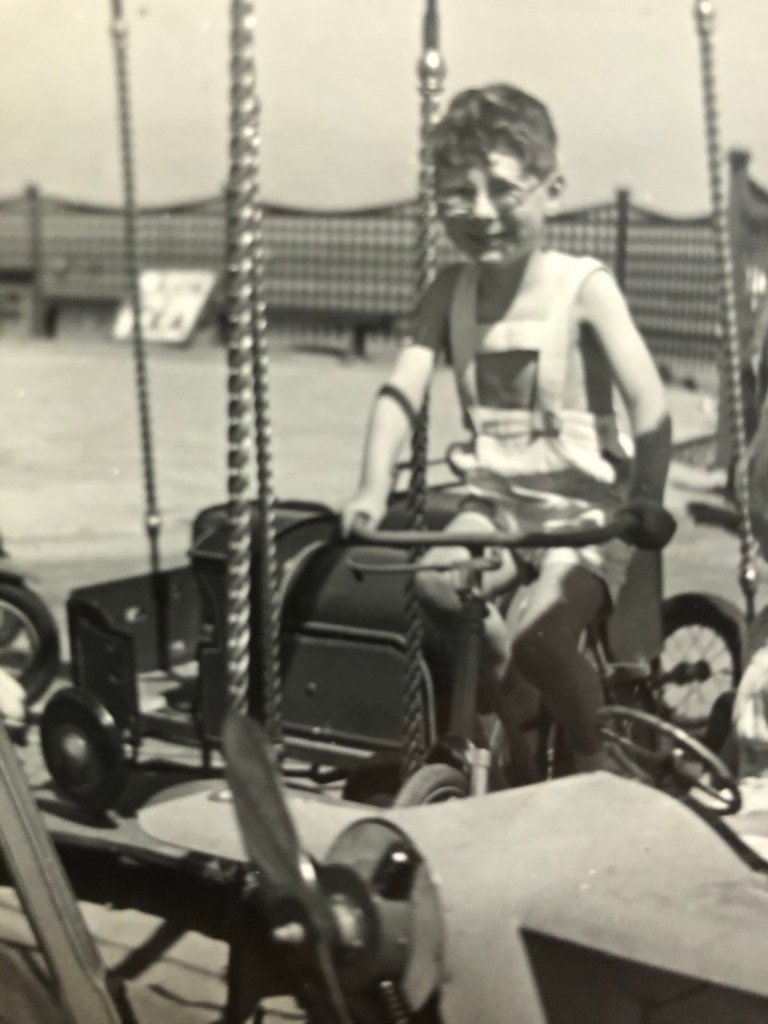 I remember going on the Little Dipper at the Blackpool Pleasure Beach; I was too scared to ask to go on the Big Dipper. My dad took me on the bumping cars, and during one bump, my nose banged against the inside front of the seating compartment and I had an impressive nose bleed. I remember my dad carrying me away with my head held back.